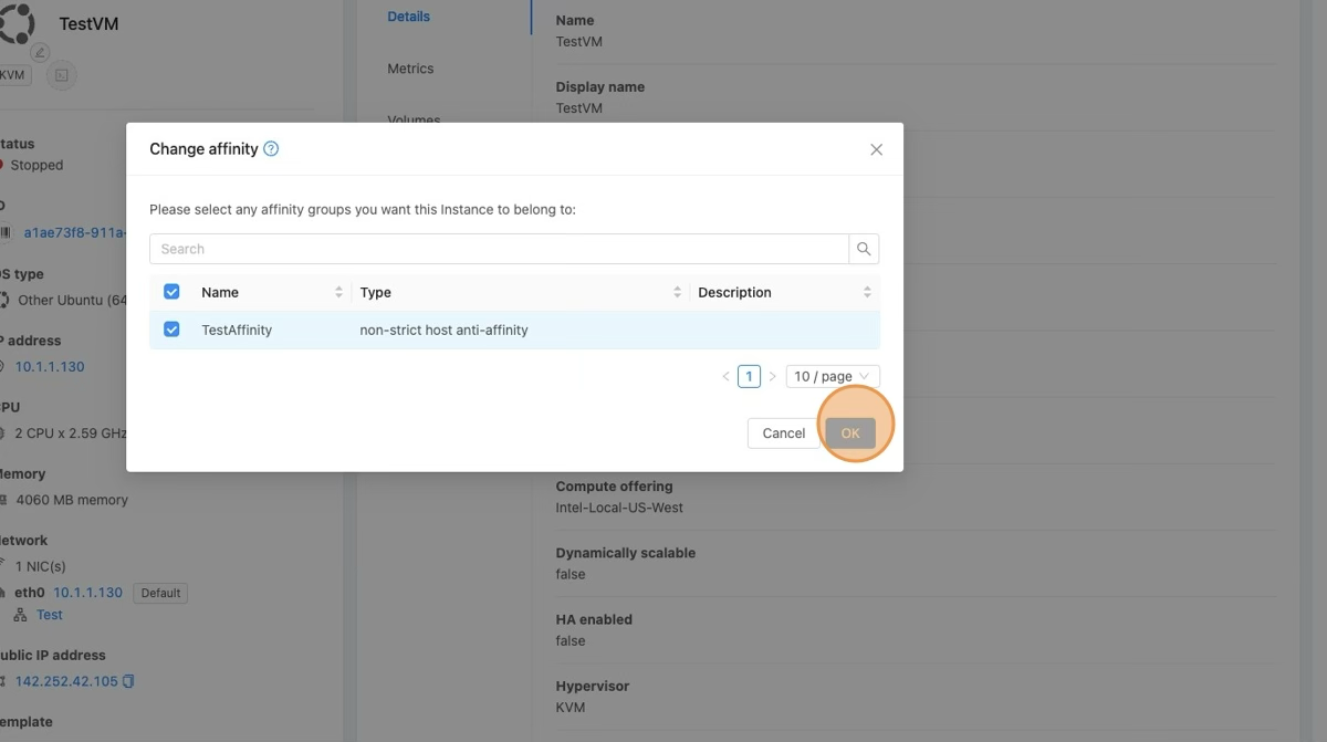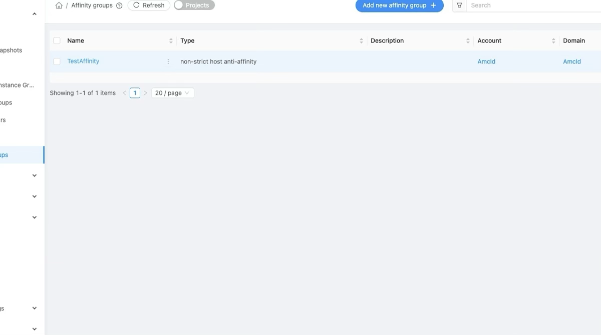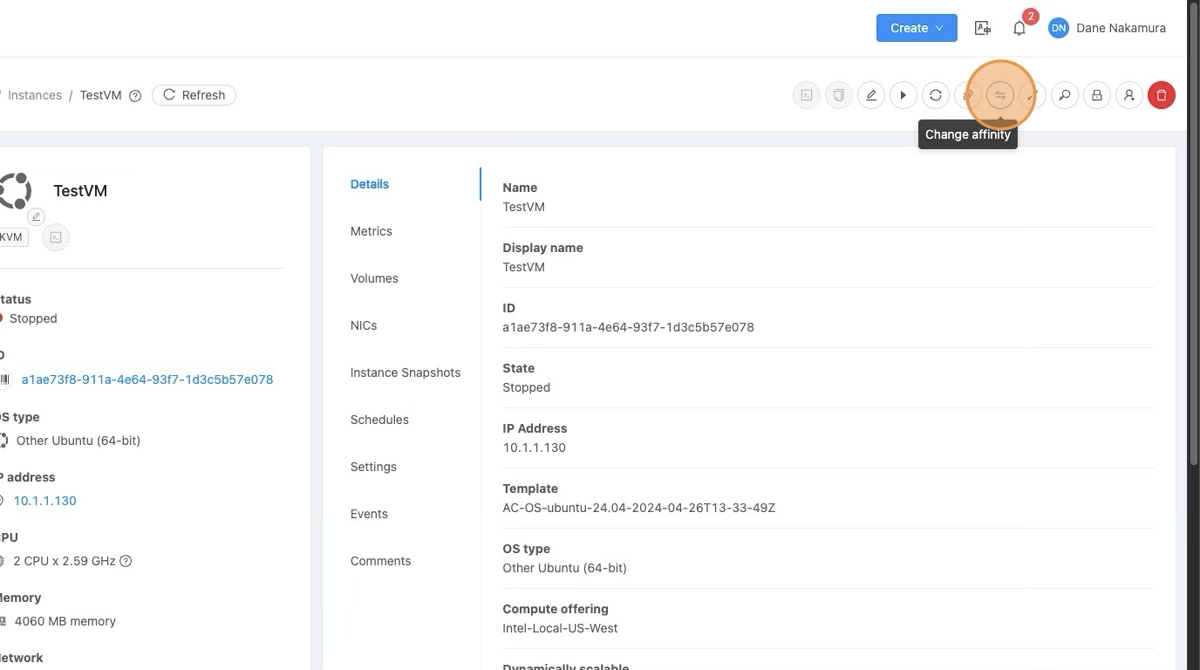 Tip! Affinity groups can be attached to instances while creating the instance. You can change an Affinity group of an existing instance from the Instance Details tab. Make sure to stop the instance before changing the Affinity group.