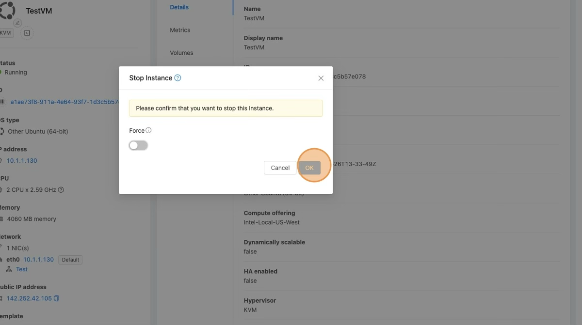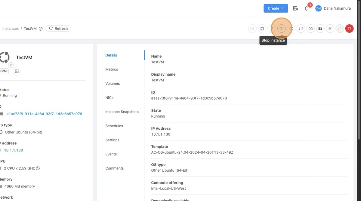 - Stop the instance, by clicking on Stop instance from the top right options.
