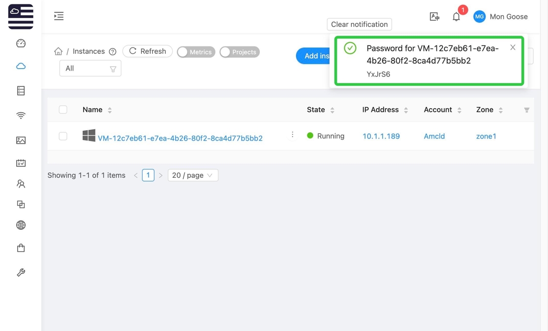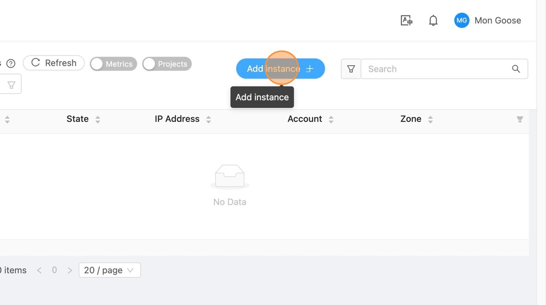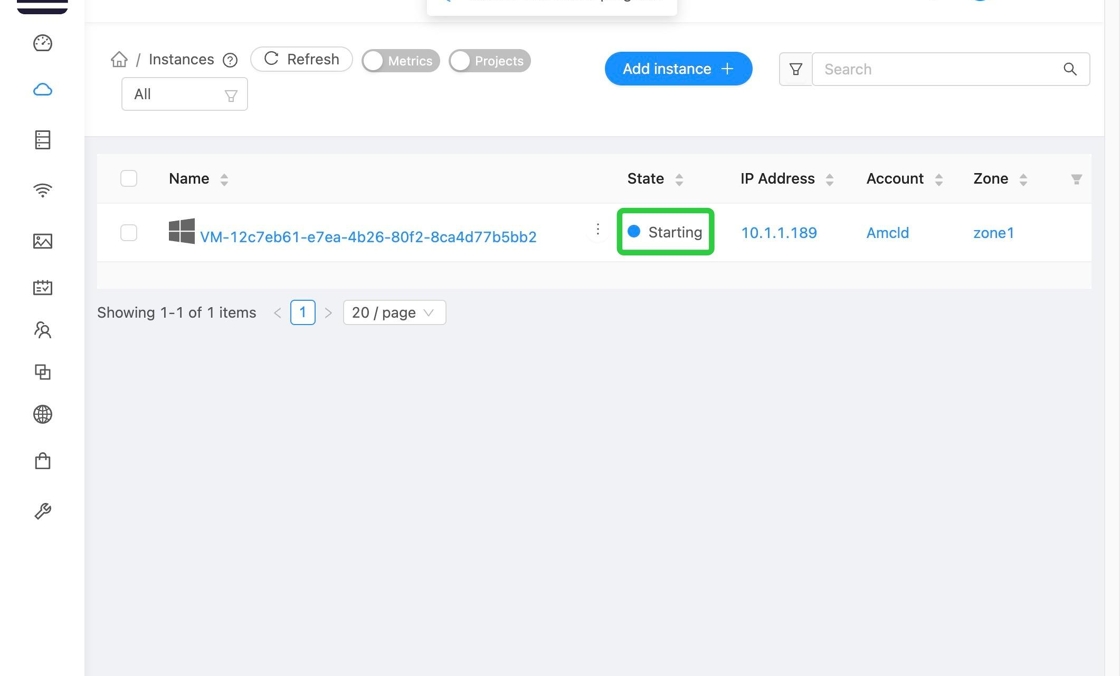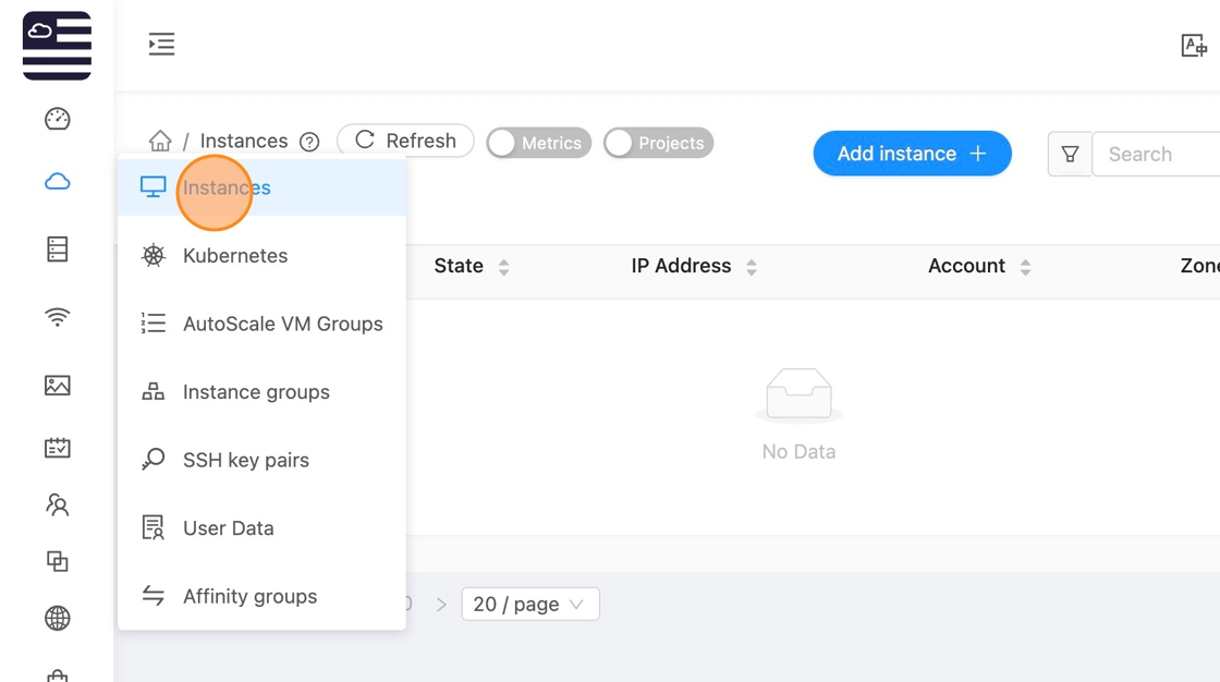 - Click [[cloud/instance]] icon from the left navigation bar and select [[instances]].