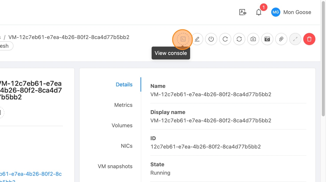 - Click "VM-12c7eb61-e7ea-4b26-80f2-8ca4d77b5bb2"