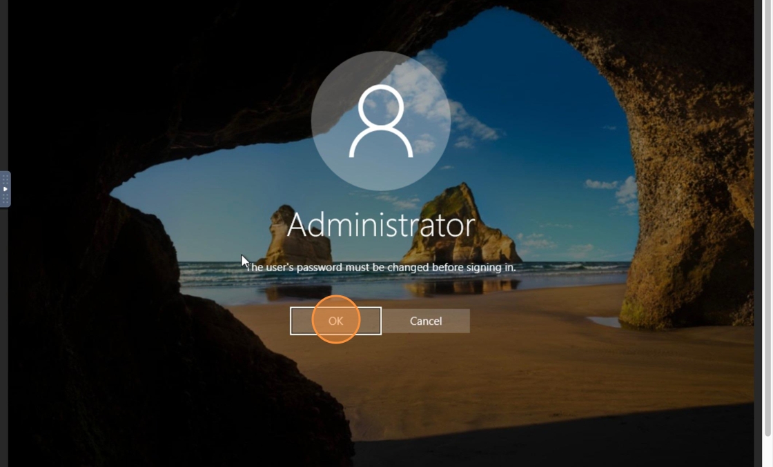 - Initial a new password for the Administrator is required. Select 'OK'.