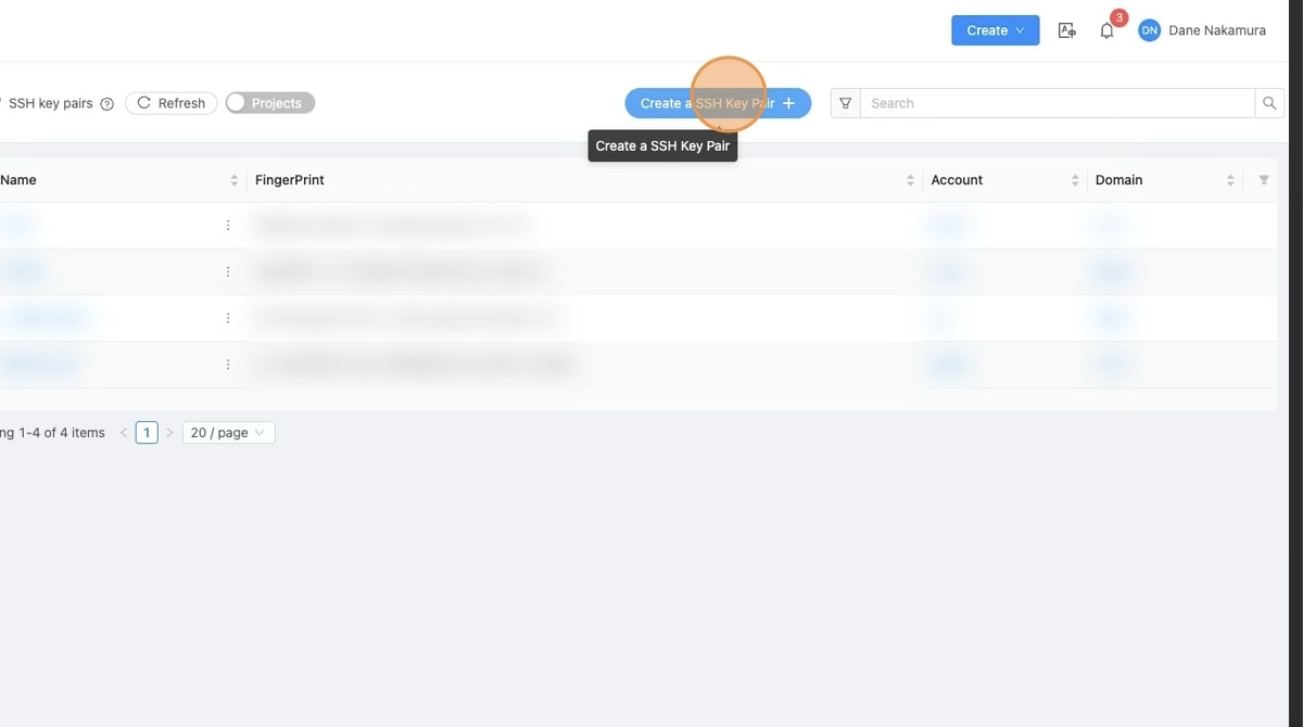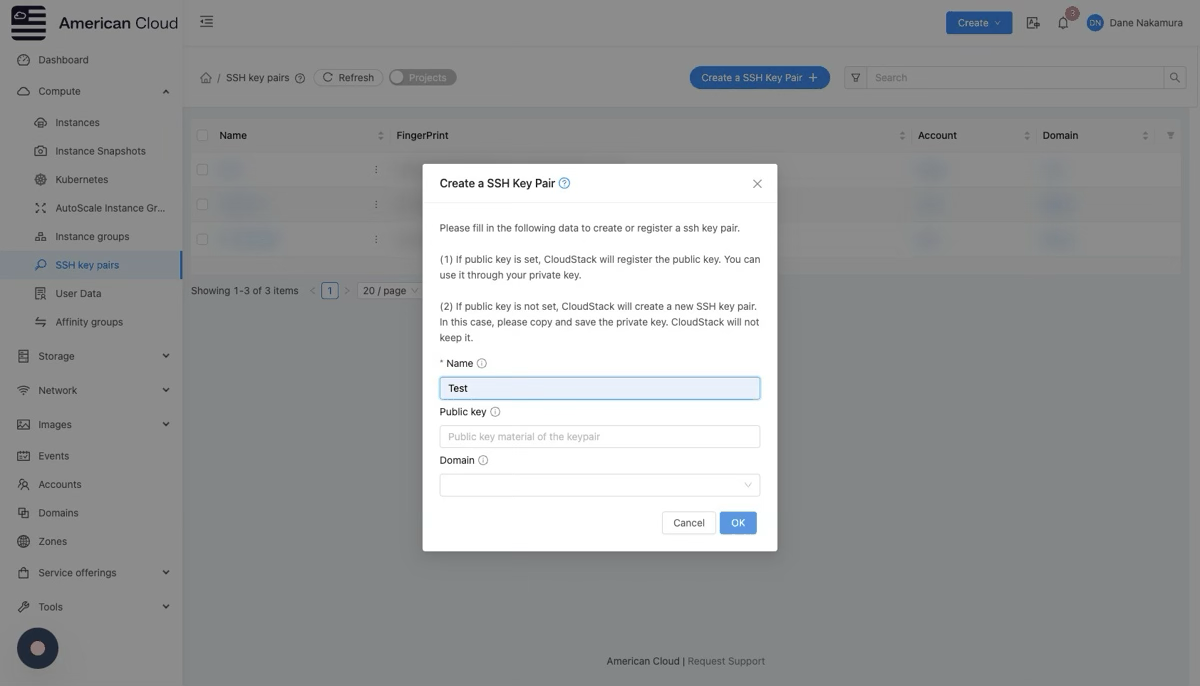 - Create a new keypair: ACE will generate a keypair and give you the private key.