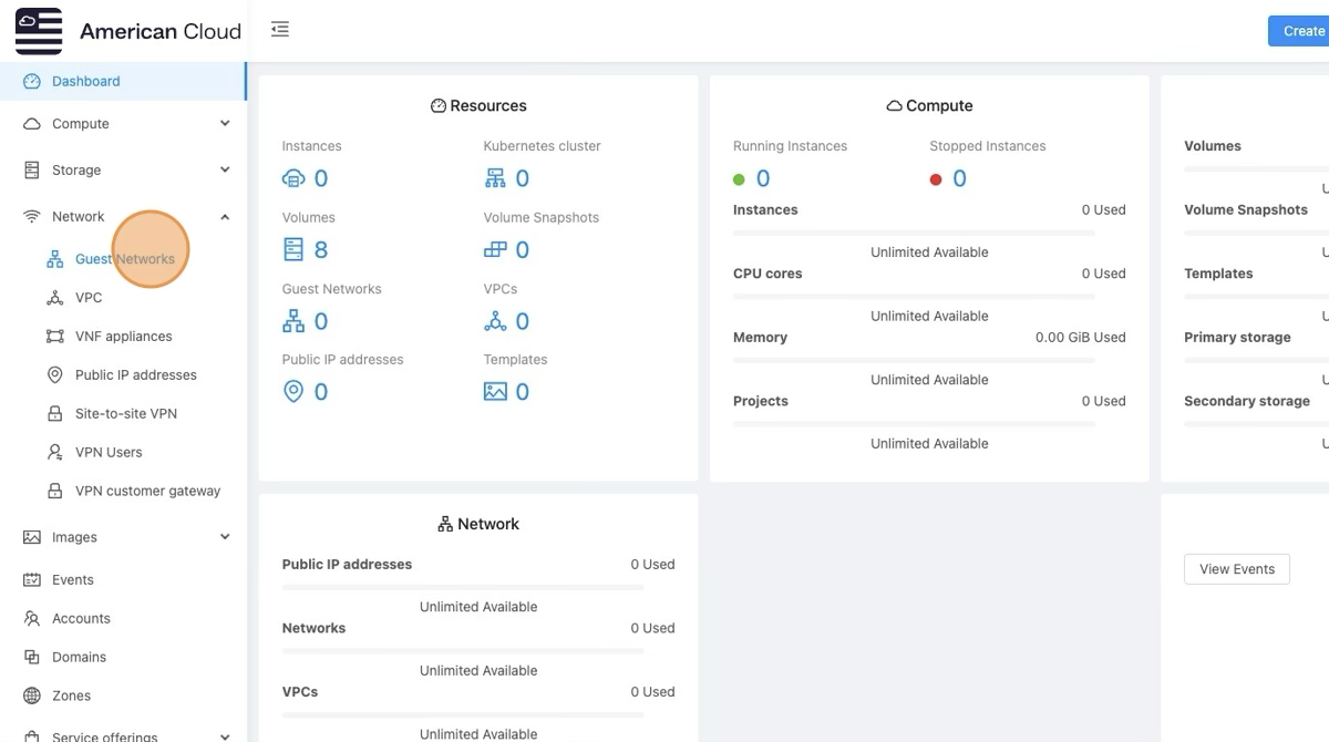 After connecting to the ACE VPN Navigate to https://gateway00.americancloud.com:8443/client/#/dashboard.