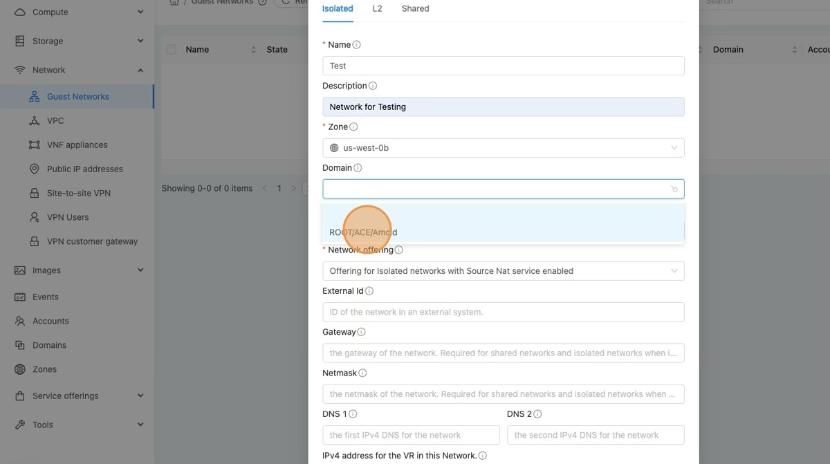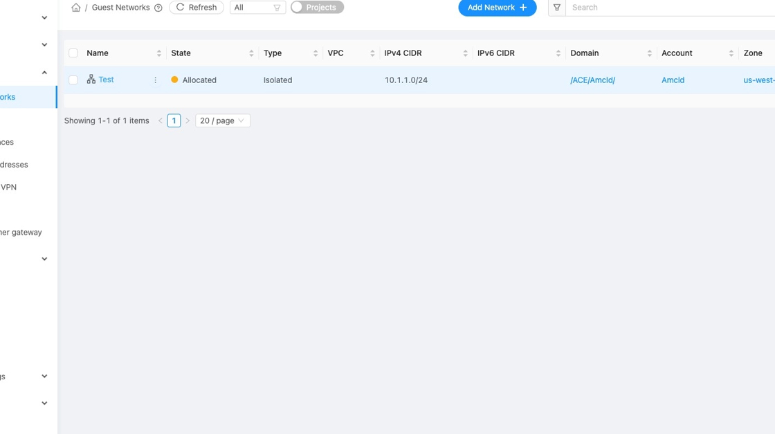 Your Isolated Network has Been Allocated. The network can be viewed by going to Network > Guest networks