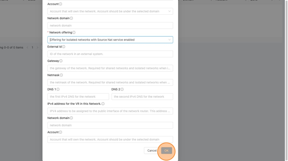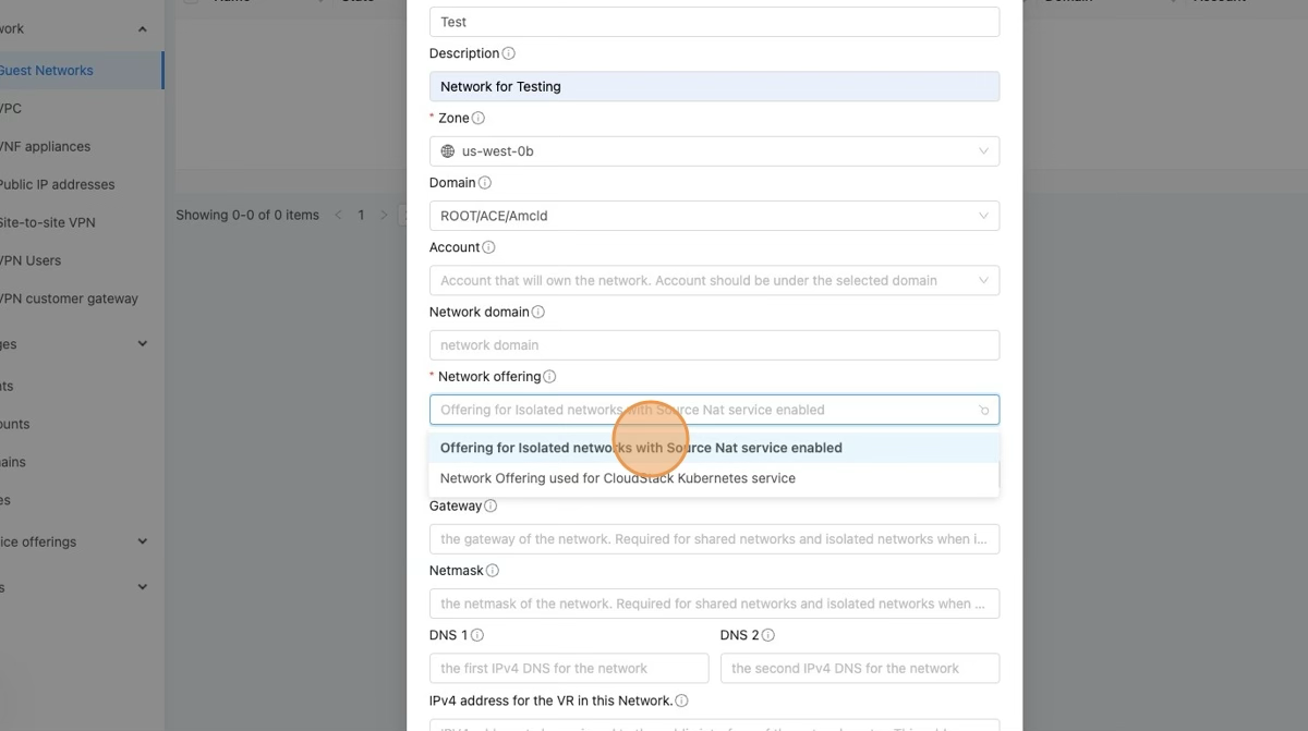 Select "Offering for Isolated networks with Source Nat service enabled"