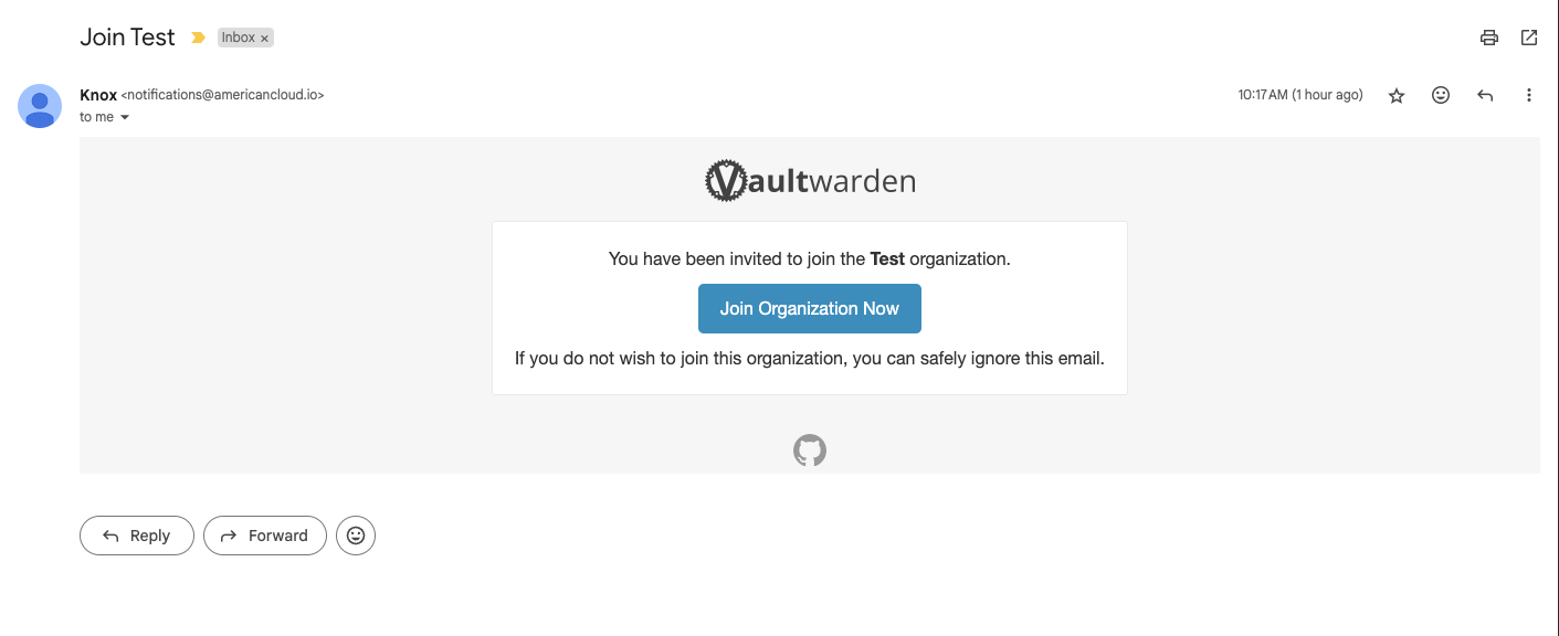 Once you have opened the email from “Knox” with the email address ([email protected]) click the “Join Organization Now” button.