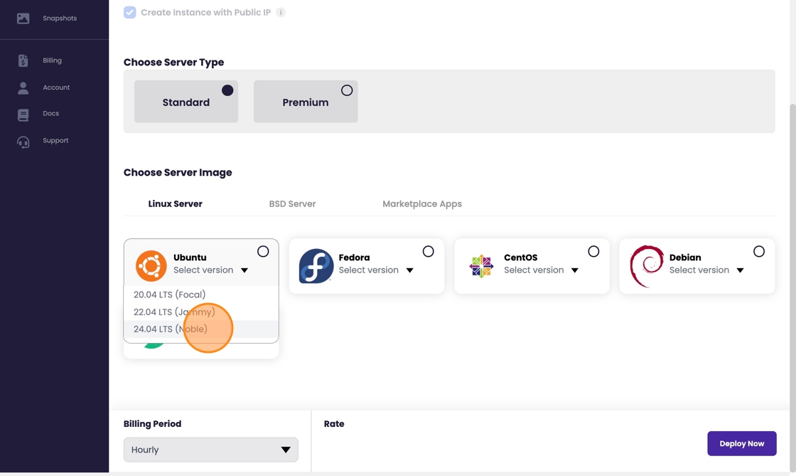 5.) Select between Standard or Premium in "US-West-0" and Standard in "US-West-0"