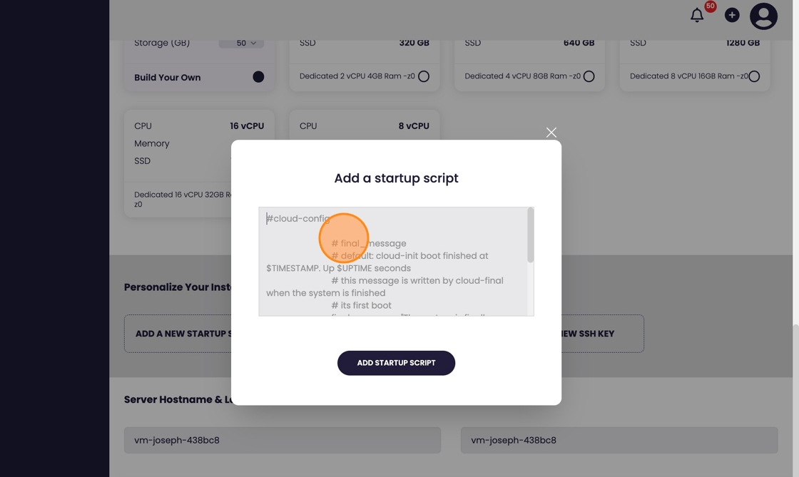 10.) Select "Add startup script"