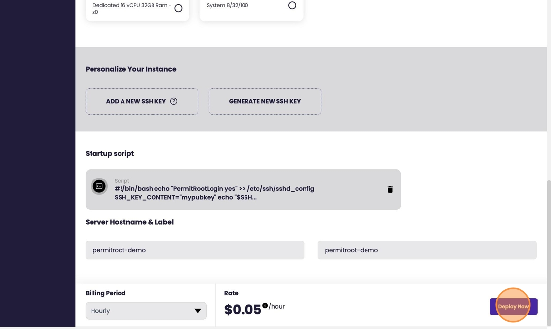 Instance Creation with Root SSH Permitted