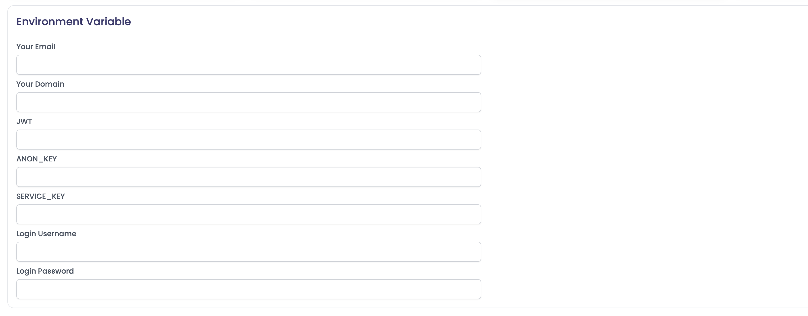 A section for Environment Variables will be displayed. Fill in the following information.
