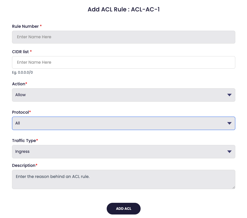 - Fill out the below fields to create the new ACL rule.