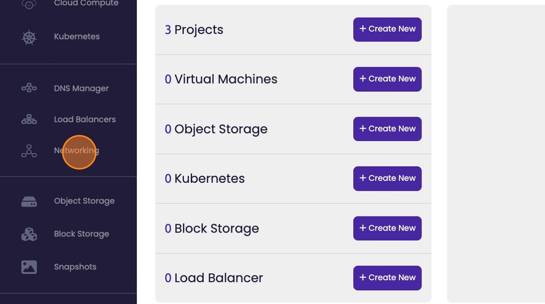 - Once the VPC is created we must add an internal network to being building our environment. Select "+ ADD NETWORK".