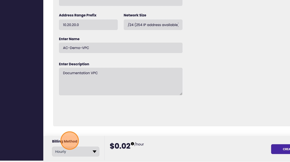 - Lastly, choose the between monthly or hourly billing method. A VPC will cost a standard $12 a month.