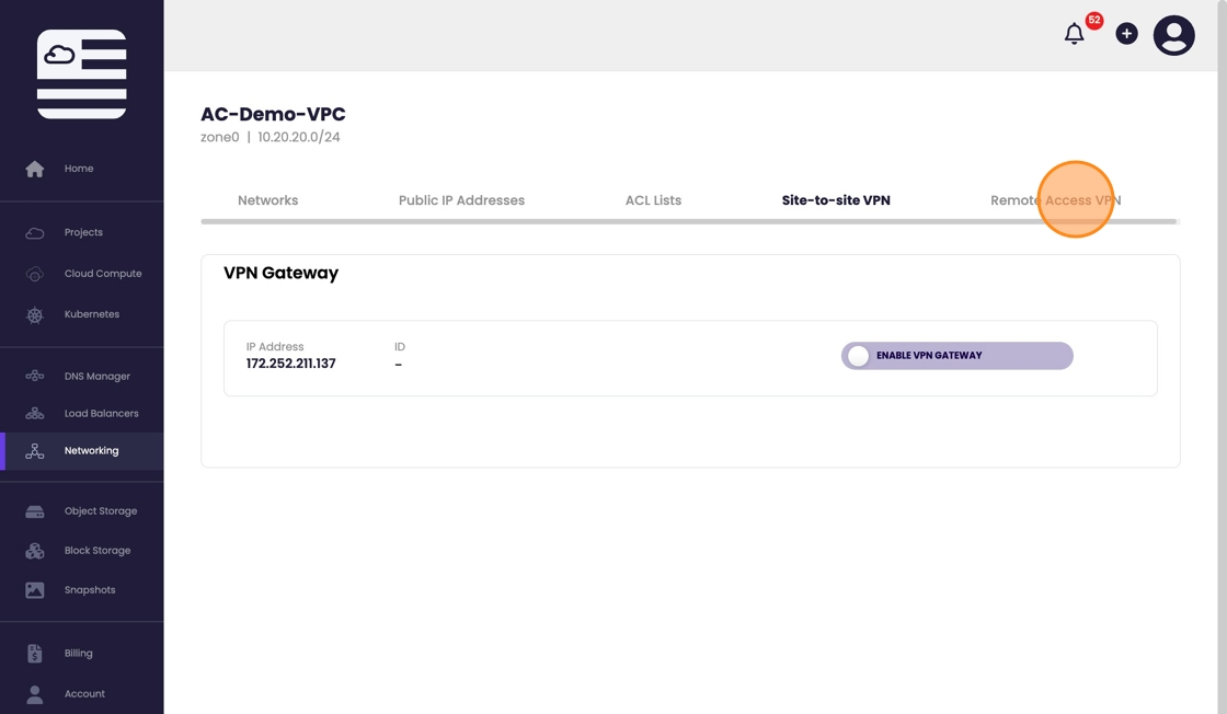 - Determine the zone to create the VPC in. Keeping in mind the premium cluster resides in US-West-0 and only standard clusters reside within US-West-1.