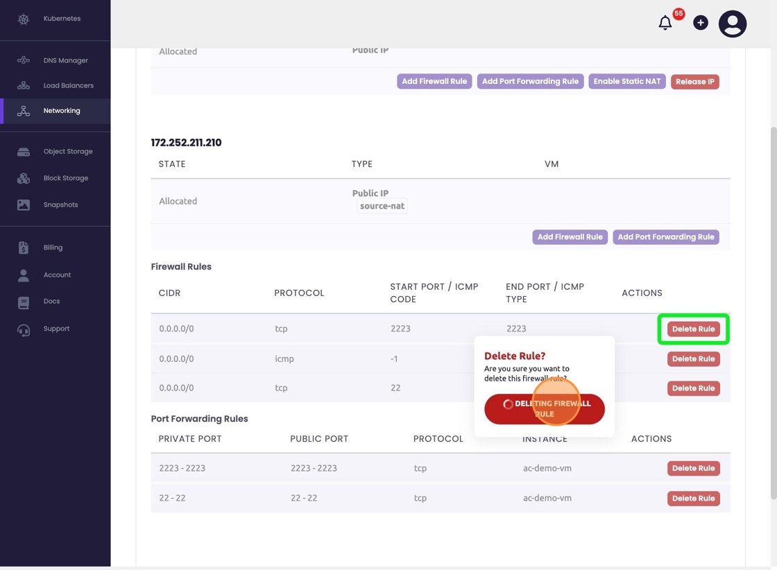 Delete Firewall/Port Forwarding Rules