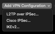 - At the bottom right, click Add VPN Configuration dropdown and select L2TP over IPSec.