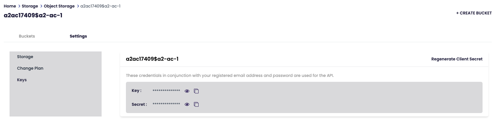 - Obtain the A2 access key and secret key, which will be needed to configure JuiceFS.