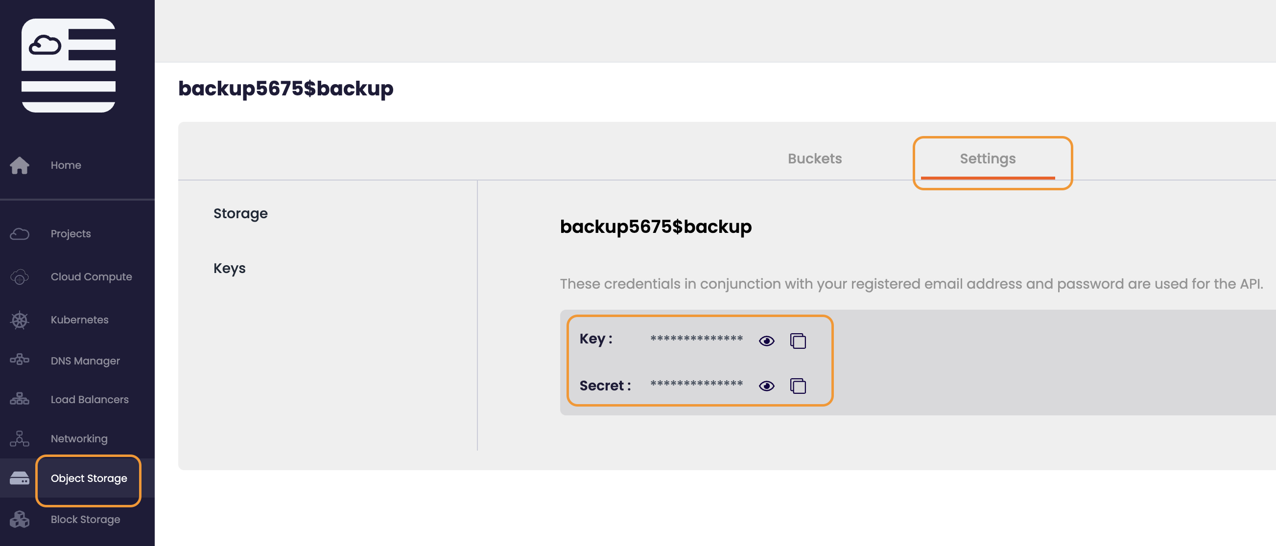 This information can be found in your account under "Object Storage". For more information, please review: