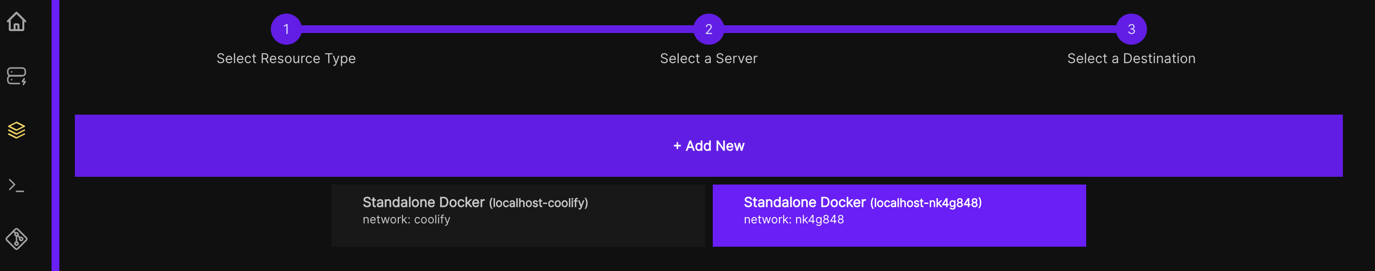 - Identify the destination for the resource. Either by selecting a previously built or adding a new destination.