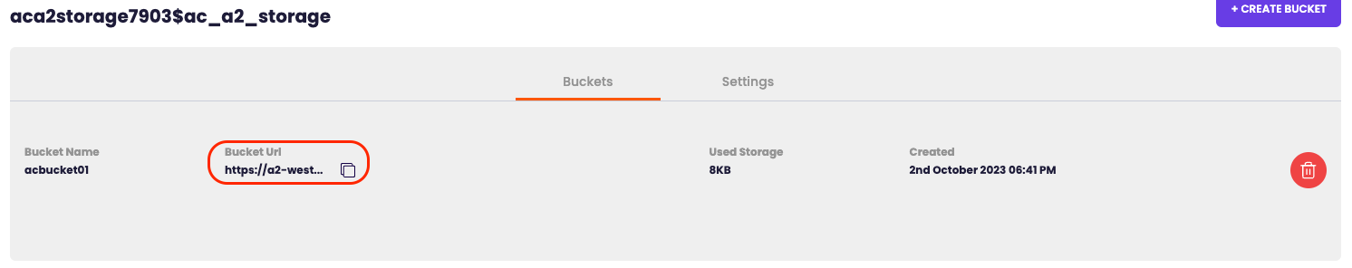 Copy the bucket URL the only thing needed will be the "region.americancloud.com" for the endpoint